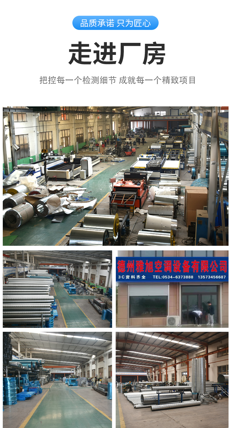 德州雅旭空調(diào)設(shè)備有限公司坐落在全國知名的玻璃鋼之鄉(xiāng)-山東武城。這里生產(chǎn)的玻璃鋼、暖通制冷空調(diào)末端產(chǎn)品更是名揚國內(nèi)外,被譽為全國的中央空調(diào)配件生產(chǎn)基地。雅旭空調(diào)設(shè)備是一家集生產(chǎn)、加工、安裝、銷售為一體的空調(diào)設(shè)備有限公司,地址位于山東省德州市武城縣魯權(quán)屯鎮(zhèn)千畝工業(yè)園,公司現(xiàn)擁有職員100名,專業(yè)技術(shù)人員10名。公司主要經(jīng)營產(chǎn)品有:風(fēng)管系列(共板法蘭風(fēng)管、角鐵法蘭風(fēng)管、不銹鋼風(fēng)管、鍍鋅風(fēng)管、無機玻璃鋼風(fēng)管、有機玻璃鋼風(fēng)管)人防系列(插板閥、超壓排氣活門、手動密閉閥門、油網(wǎng)過濾器、手動電動兩用風(fēng)機、全自動成型人防管道);風(fēng)機系列(排煙風(fēng)機、混流風(fēng)機、軸流風(fēng)機、離心風(fēng)機、斜流風(fēng)機、屋頂風(fēng)機)﹔風(fēng)閥系列(排煙閥、防火閥、調(diào)節(jié)閥、止回閥)、風(fēng)口系列、空調(diào)機組、消聲靜壓箱、消聲器、消聲彎頭、等中央空調(diào)通風(fēng)末端配套產(chǎn)品。